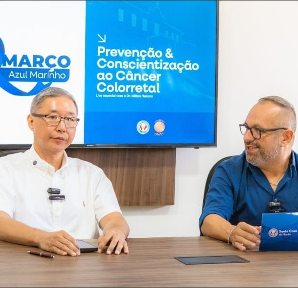 A Santa Casa de Marília promoveu, nesta terça-feira (24), uma live especial voltada à prevenção, diagnóstico e tratamento do câncer colorretal, como parte das ações da campanha Março Azul-Marinho, dedicada à conscientização sobre a doença. A transmissão foi realizada pelo Instagram oficial da instituição (@santacasademarilia) e contou com a participação do cirurgião oncológico Milton Nakano.