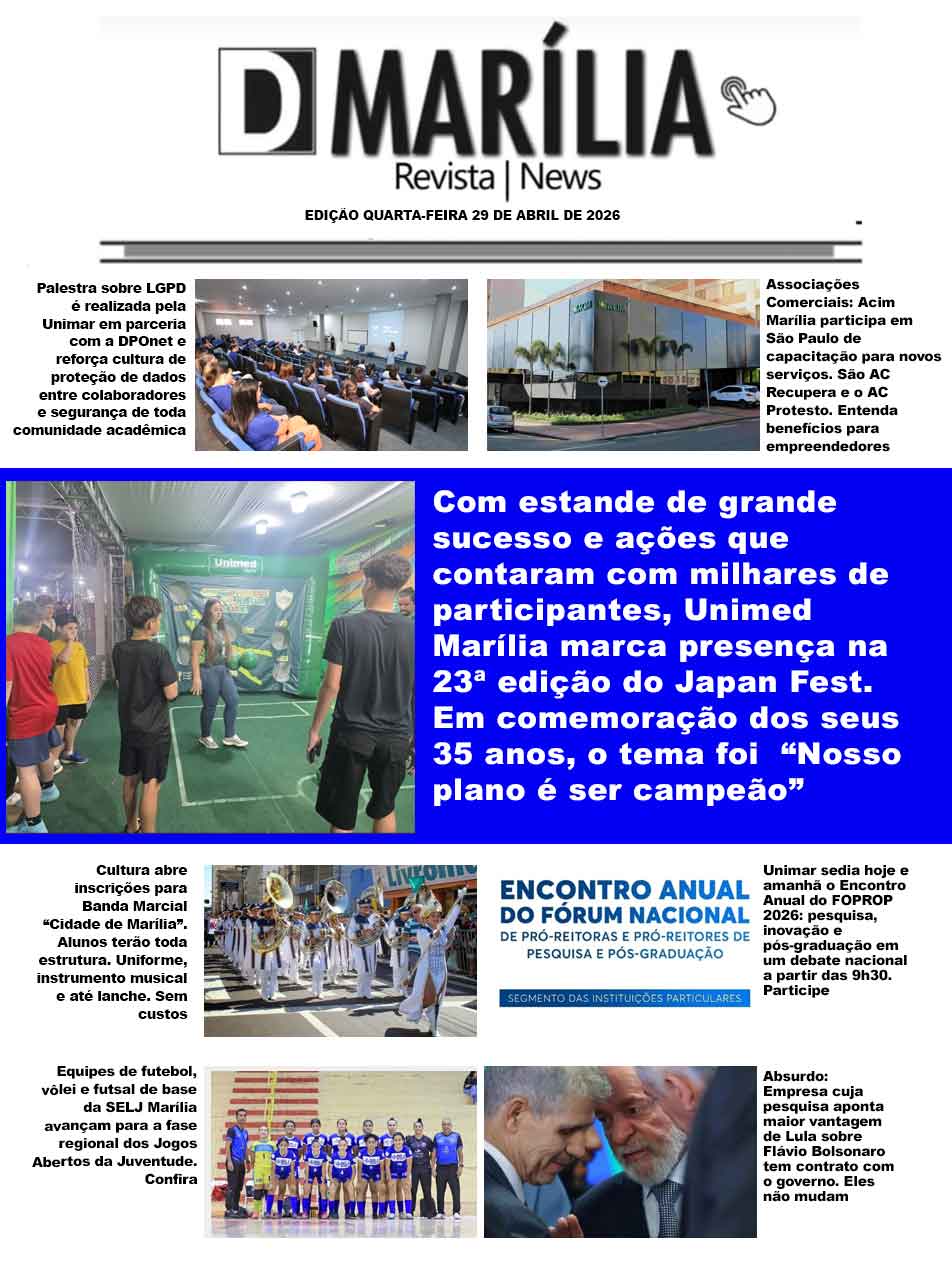 Com estande de grande sucesso e ações que contaram com milhares de participantes, Unimed Marília marca presença na 23ª edição do Japan Fest. Em comemoração dos seus 35 anos, o tema foi “Nosso plano é ser campeão”