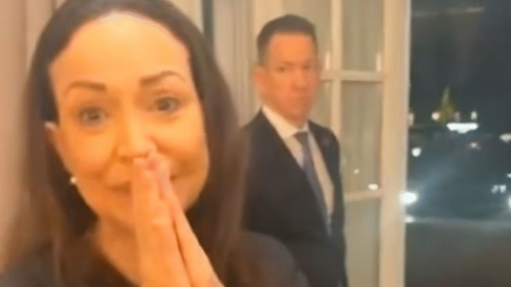 Mais cedo, ela já havia saudado apoiadores reunidos do lado de fora da cerimônia, em um gesto que provocou forte comoção e reforçou sua projeção internacional em meio à condição de perseguida política pelo regime de Nicolás Maduro.