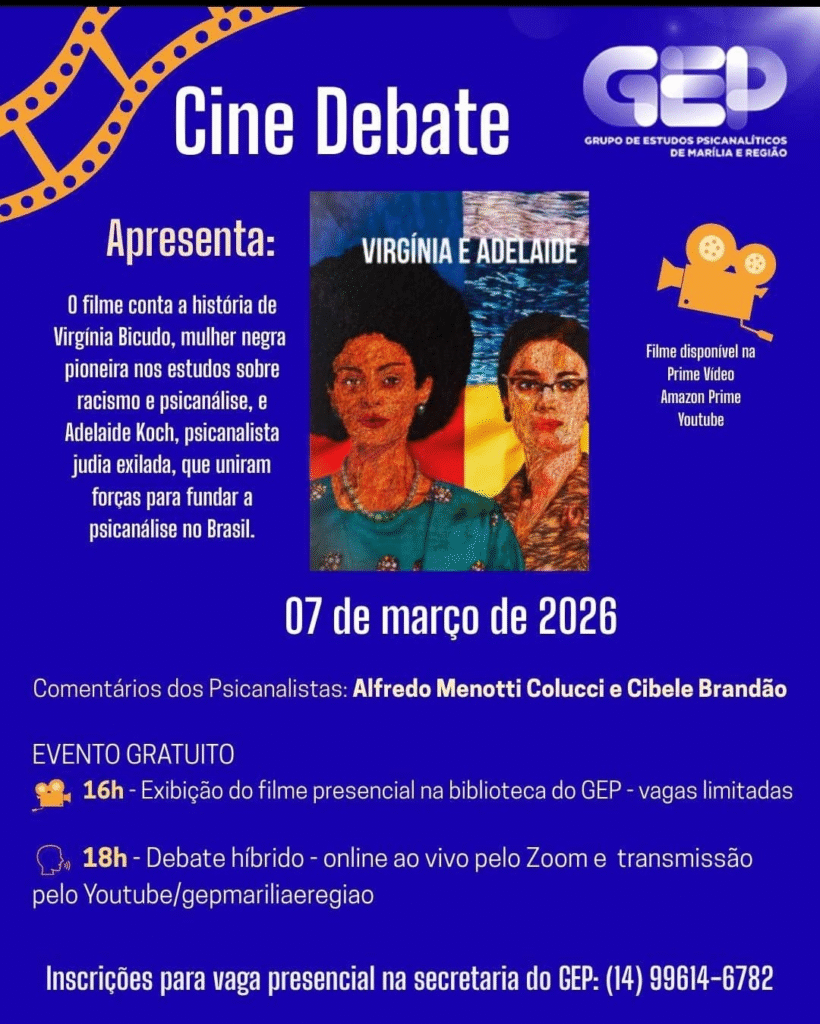 Nesta edição, exibiremos o filme Virgínia e Adelaide, que retrata a trajetória de duas pioneiras fundamentais: Virgínia Leone Bicudo, socióloga e psicanalista que abriu caminhos inéditos ao investigar as relações raciais no Brasil, e Adelaide Koch, psicanalista judia que, exilada do nazismo, encontrou no Brasil um território fértil para semear a formação psicanalítica ao lado de Virgínia.