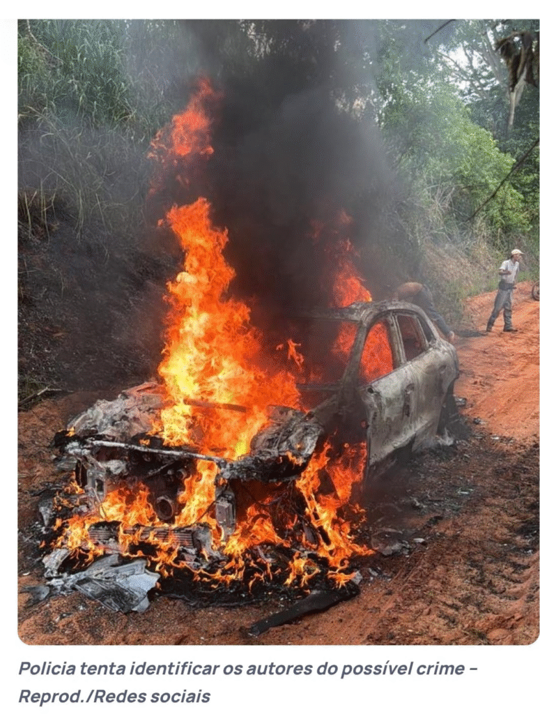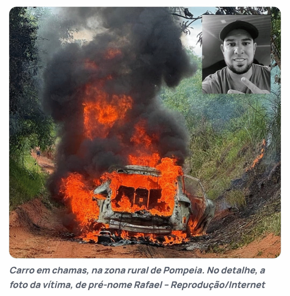 A Polícia Civil deu início ontem a uma complexa investigação após a descoberta de um veículo de luxo, modelo Porsche Macan com placas de Marília, completamente incendiado na zona rural de Pompeia. O incidente, ocorrido na tarde desta sexta-feira (16), ganhou contornos ainda mais graves com a confirmação da presença de um corpo carbonizado no banco traseiro do automóvel.