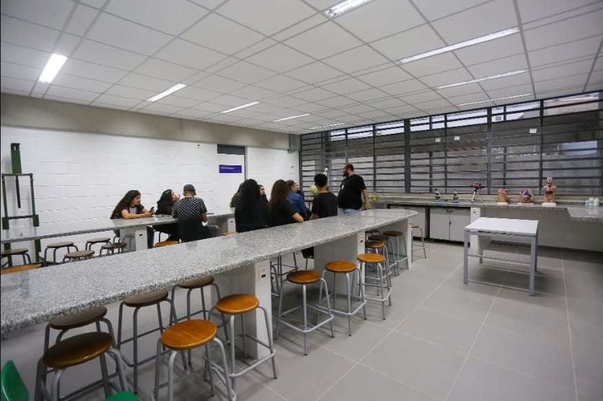 Há oportunidades nos seis eixos de cursos ofertados nas escolas da rede estadual: gestão e negócios (administração, logística e vendas), saúde (enfermagem e farmácia), tecnologia da informação (ciência de dados e desenvolvimento de sistemas e robótica), recursos naturais (agronegócio), turismo, hospitalidade e lazer (hospedagem) e controle e processos industriais (eletrônica).