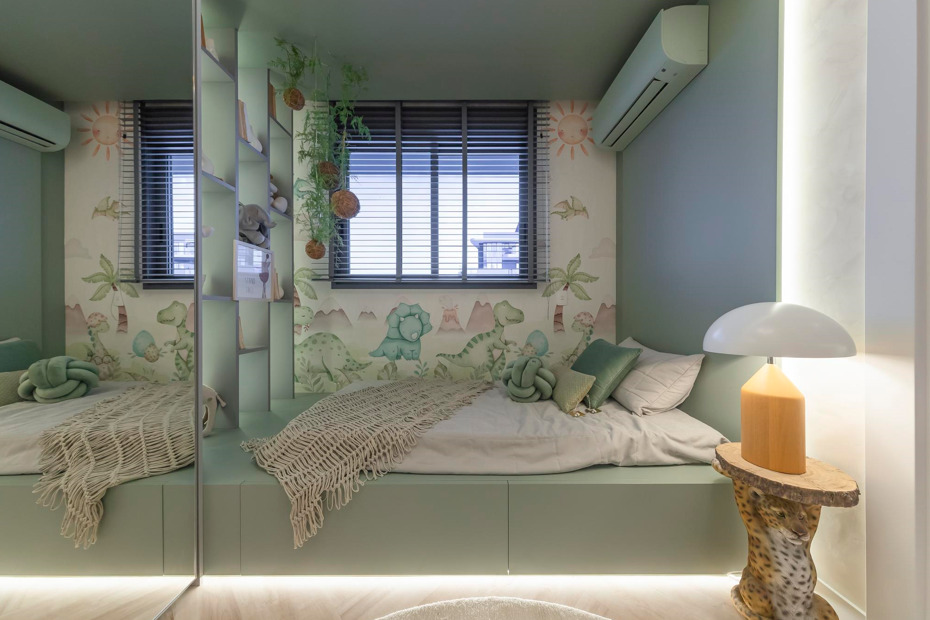 As cores desempenham um papel importante em questões como qualidade do sono, relaxamento, estímulo da criatividade e energia. Para as crianças, a escolha das cores pode transmitir diversas sensações. No lançamento Solaia Garden Home Resort, em Curitiba (PR), o decorado apresenta um quarto infantil com paredes em tons de verde, proporcionando um sentimento de calma.
