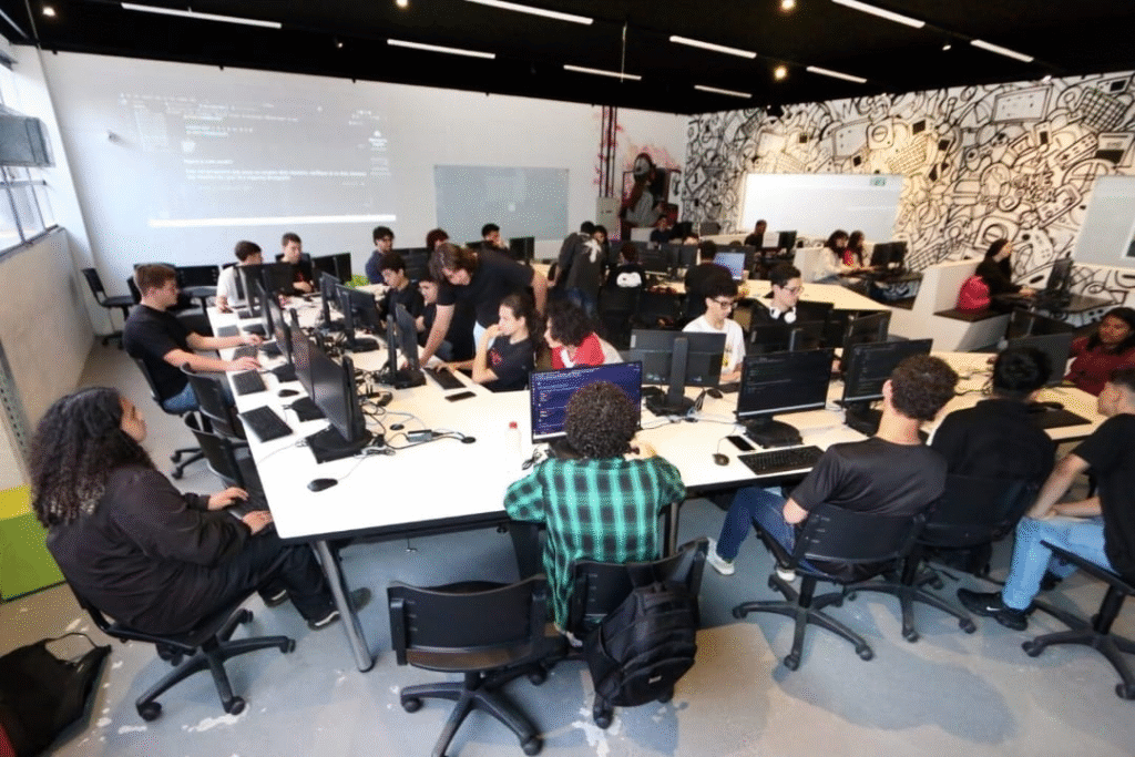 O grande diferencial competitivo, no entanto, reside no desenho pedagógico. O coordenador explica que a matriz curricular é disruptiva e totalmente voltada para a empregabilidade imediata.