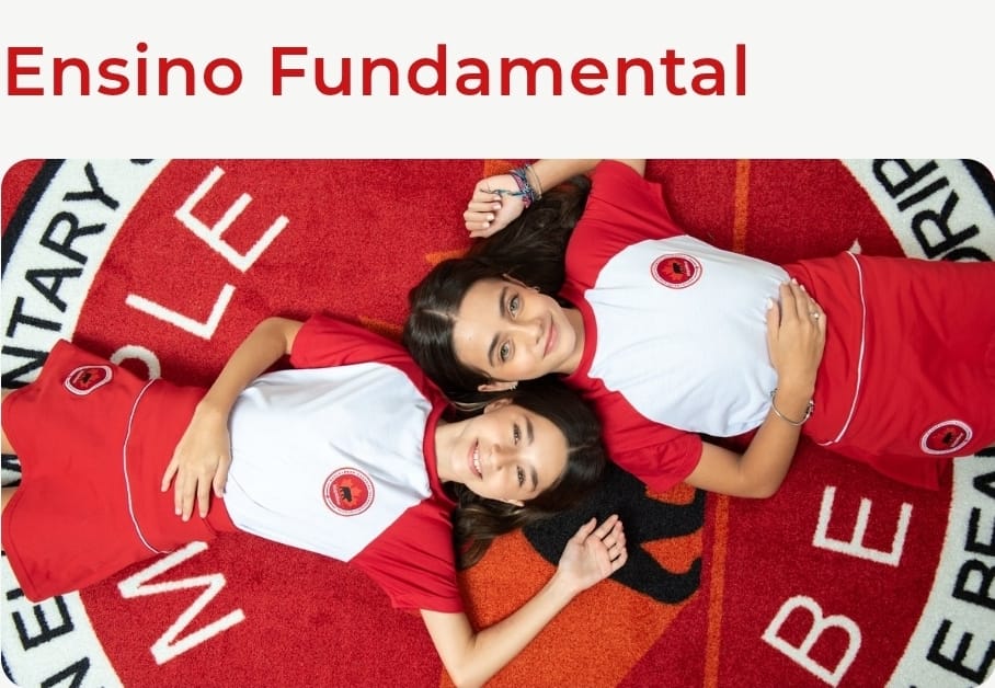 O currículo abrange desde a educação infantil até o ensino fundamental, com disciplinas em inglês e português — incluindo inglês, matemática e ciências integralmente ministrados em inglês no fundamental.