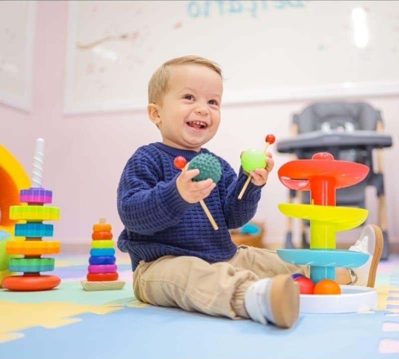 • Espaço de atividades com painel sensorial e piso acolchoado;