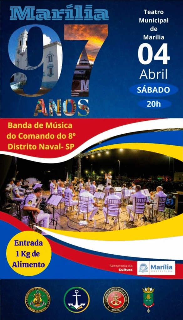 Além da solenidade de hasteamento das bandeiras às 8h em frente à Prefeitura, e do tradicional desfile cívico-militar a partir das 9h na Avenida Sampaio Vidal, no sábado (4) à noite a Cultura preparou uma apresentação pra lá de especial: a Banda de Música do 8º Distrito Naval se apresenta às 20h no Teatro Municipal.