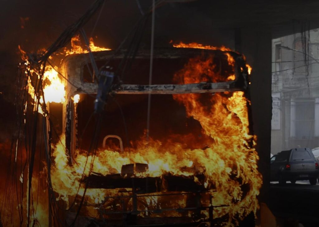 VIOLÊNCIA NO RIO | Após a morte de Claudio Augusto dos Santos, o Jiló, apontado como chefe do tráfico no Morro dos Prazeres, uma série de ações criminosas tomaram ruas da região central do Rio. Na Avenida Paulo de Frontin, no Rio Comprido, um ônibus foi incendiado. Outros foram sequestrados e usados como bloqueios. Desde o início da manhã, policiais militares fazem uma operação nas comunidades Prazeres, Fallet, Fogueteiro, Coroa, Escondidinho e Paula Ramos. O Rio Ônibus informou que cinco ônibus tiveram suas chaves retiradas e foram usados como barricadas no Rio Comprido. Sete linhas sofrem desvios de itinerário.