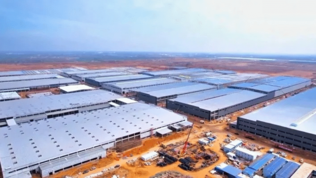 A mega instalação abriga 57 mil funcionários e integra, em um único território, setores de estamparia, soldagem, montagem final, parques de baterias e centros logísticos. A planta é considerada o maior complexo industrial da empresa para atender o mercado interno chinês.