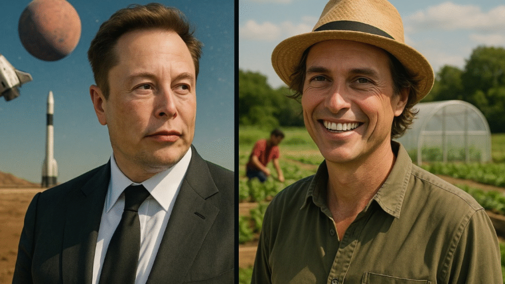Esse cruzamento de ideias mostra como os caminhos dos irmãos se encontram, mesmo quando suas metas parecem seguir direções opostas. Elon busca novos mundos. Kimbal aposta no planeta que temos.