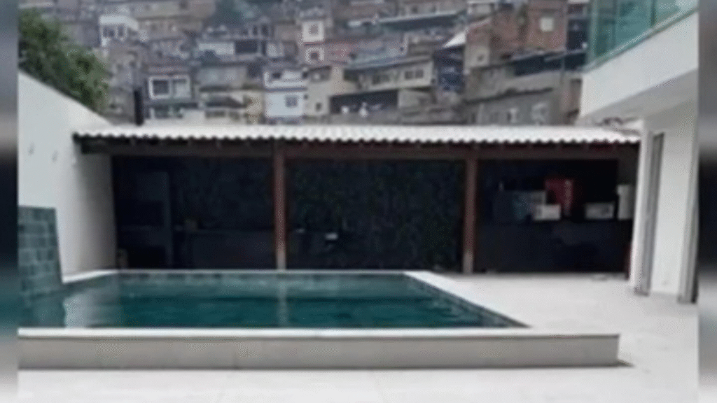 A Polícia Civil do Rio de Janeiro destruiu um verdadeiro “oásis do crime” no Complexo do Alemão. O Comando Vermelho mantinha no alto da comunidade um imóvel digno de resort: piscina de azulejos importados, área gourmet com churrasqueira embutida, suítes climatizadas com porcelanato e iluminação sofisticada. Um luxo em meio aos barracos, usado como refúgio e ponto de encontro de chefes do tráfico. Com informações de Metrópoles.