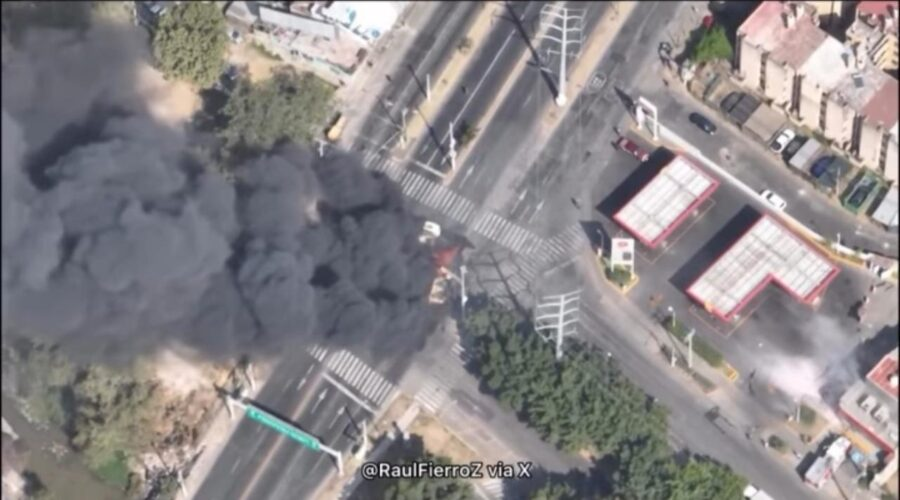 Imagens de drone captadas em Guadalajara neste domingo (22/2) mostraram veículos em chamas, lançando densas colunas de fumaça sobre a segunda maior cidade do México, após a morte do narcotraficante mexicano conhecido como “El Mencho” em uma operação.