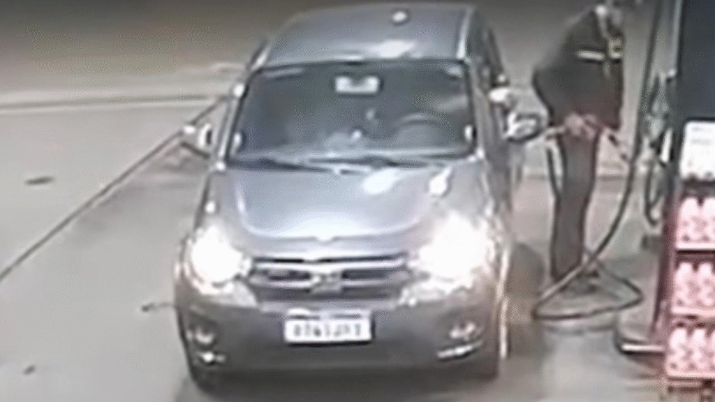 Dupla é flagrada por câmeras de segurança de posto comprando gasolina para queimar motorista de APP; VEJA VÍDEO
