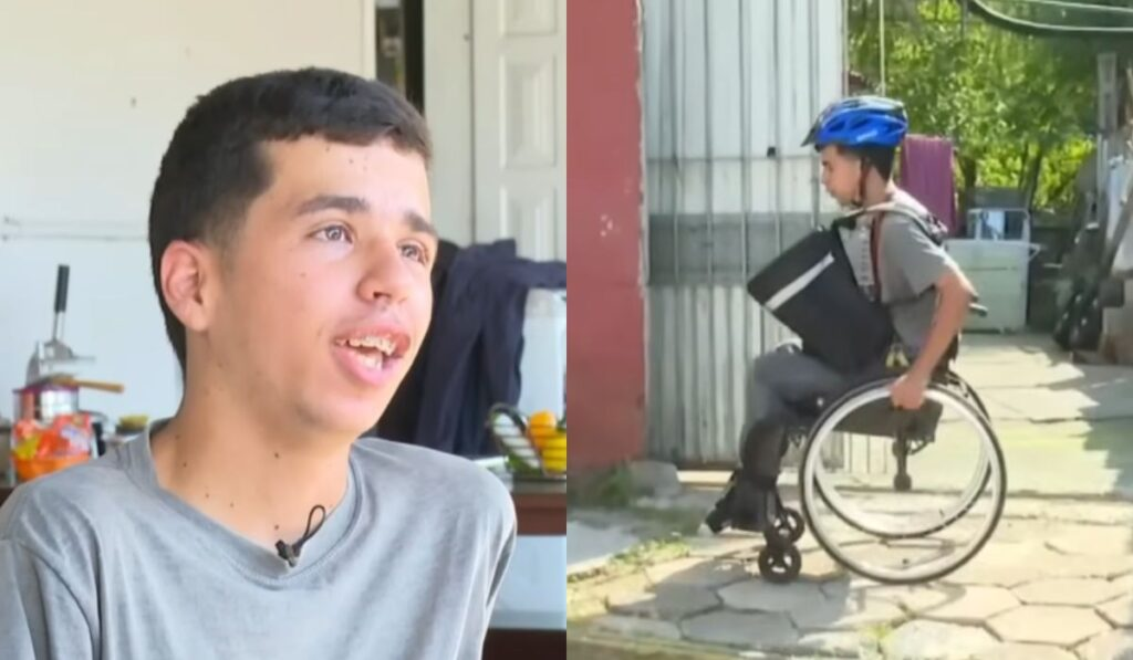 Samuel Soares Araújo, um jovem de 19 anos, viralizou nas redes sociais ao mostrar o seu dia a dia como entregador usando cadeira de rodas em São José. Em 5 de março, ele publicou um vídeo destacando o seu primeiro dia de trabalho por aplicativos.