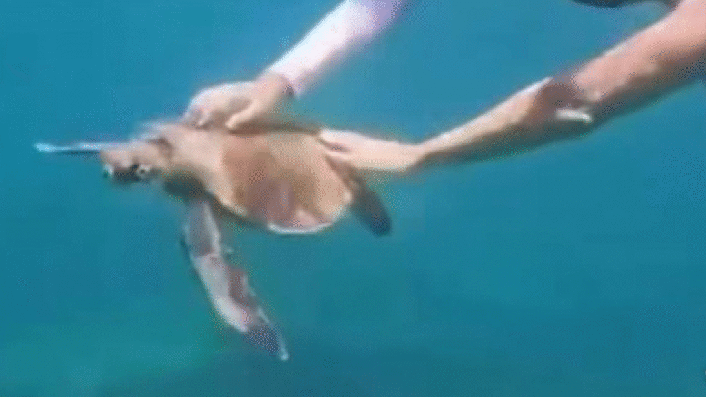 Uma turista de Florianópolis foi multada em R$ 10 mil após ser flagrada, junto com familiares, tocando em uma tartaruga-marinha durante um mergulho em Fernando de Noronha (PE).