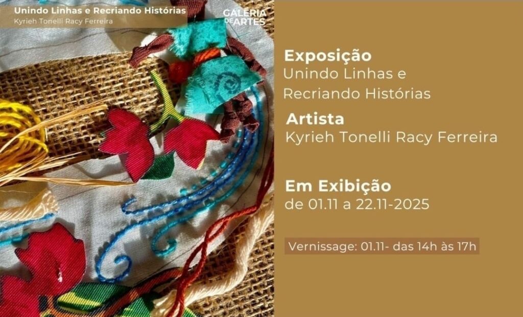 A Prefeitura de Marília, por meio da Galeria Municipal de Artes – órgão vinculado à Secretaria da Cultura, realiza dia 1º de novembro (sábado) a vernissage da exposição ‘Unindo Linhas e Recriando Histórias’, desenvolvida por Kyrieh Tonelli, com apoio do Edital para Fomento à Execução de Ações Culturais, do Programa Nacional Aldir Blanc – PNAB 2024. O evento acontecerá das 14h às 17h e contará com uma roda de conversa.