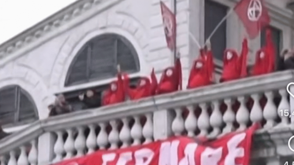 Em Veneza, o pigmento mudou a cor da água e uma faixa “Parem o Ecocídio” foi aberta na Ponte Rialto. Greta participou do ato “Stop Ecocide”, marcado por ativistas vestidos de vermelho e véus, simbolizando um planeta em colapso. O governador criticou o protesto, chamando-o de desrespeitoso.