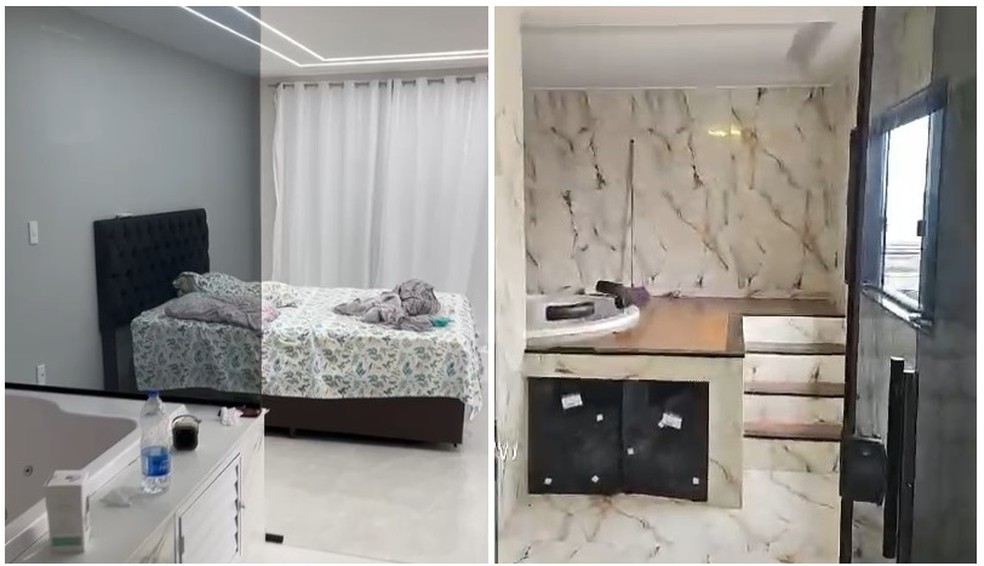Na casa, os policiais encontraram uma piscina, com deck de madeira, espaço gourmet, mesa ampla, bancada em mármore e uma grande churrasqueira. No mesmo andar da casa, o criminoso também montou uma área de cinema.