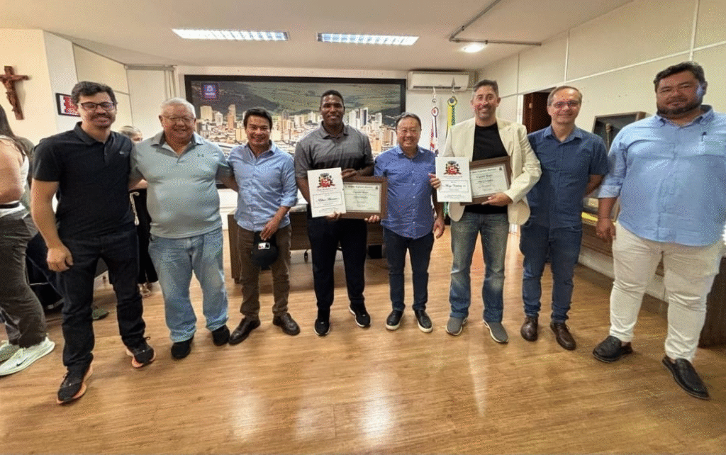 A recepção no Paço Municipal contou com a participação das secretárias Rosemeire Frazon (Educação) e Valéria Cavecci (Esportes, Lazer e Juventude), da diretora de Divulgação e Comunicação Ana Claudia Caetano Gimenez, além dos vereadores Danilo Bigeschi (presidente da Câmara) e Elio Ajeka.