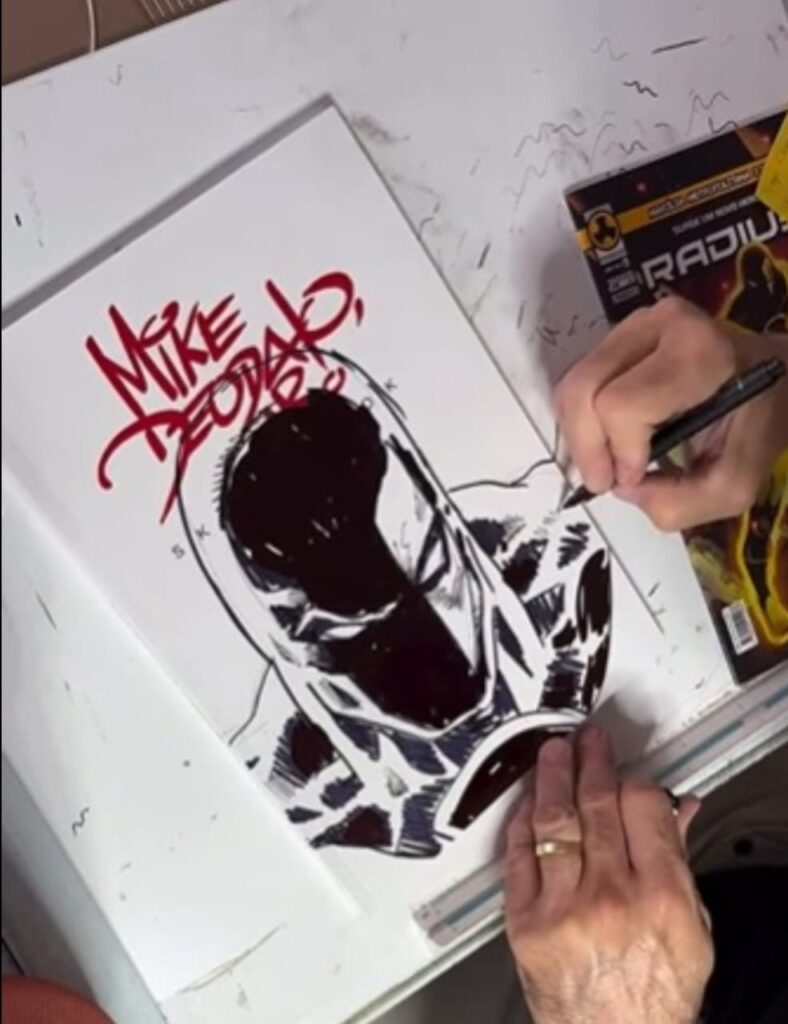 Com reconhecimento mundial, o desenhista Mike Deodato Júnior foi responsável pelo ressurgimento da Mulher Maravilha, ao redefinir traços e a estética da personagem dos estúdios DC Comics, o mesmo estúdio responsável por Batman. “Realmente foi incrível acompanhar o passo a passo do Mike em sua versão de Radius. Admiro muito o trabalho do Mike há anos e para uma pessoa que gosta de histórias em quadrinhos como eu, ter meu personagem desenhado pelo Mike é uma grande honra”, disse Tiago de Moraes das Chagas. O vídeo do processo de recriação mencionado por Tiago é possível acompanhar neste link: