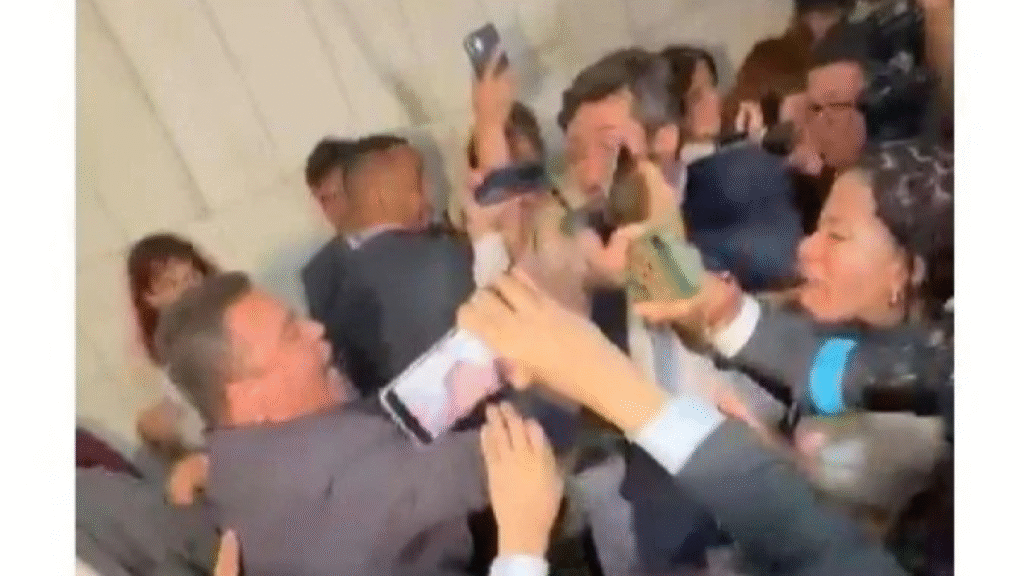 Testemunhas relataram que os policiais sacaram os repórteres à força, em meio a um tumulto cujo motivo ainda não foi esclarecido. A cena causou indignação entre colegas de imprensa e parlamentares presentes.
