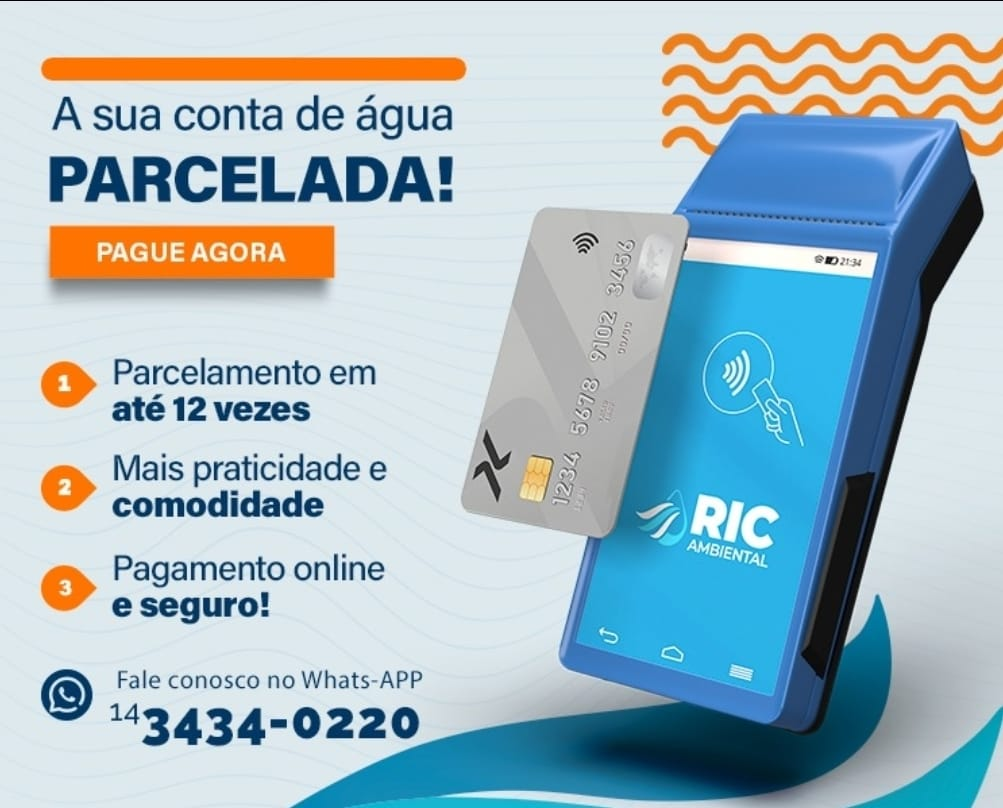A regularidade no pagamento da conta de água é fundamental para evitar transtornos e garantir o pleno funcionamento dos serviços de abastecimento. Atenta às necessidades dos clientes e à importância de facilitar o acesso à regularização de débitos, a RIC Ambiental amplia suas formas de pagamento e passa a permitir o pagamento da fatura com cartão de crédito, com parcelamento em até 12 vezes.