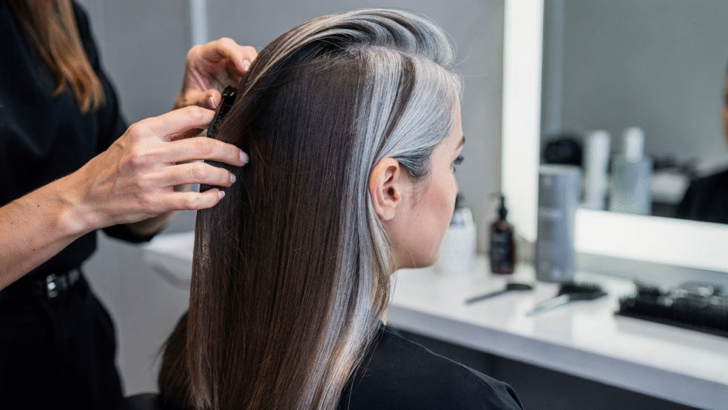 O segredo para uma transição para o grisalho sem traumas é evitar a “linha dura” que a tinta permanente deixa quando o cabelo cresce. O ideal é substituir a coloração oxidativa por tonalizantes ou gloss, que desbotam gradualmente e não criam um contraste tão agressivo com o couro cabeludo.
