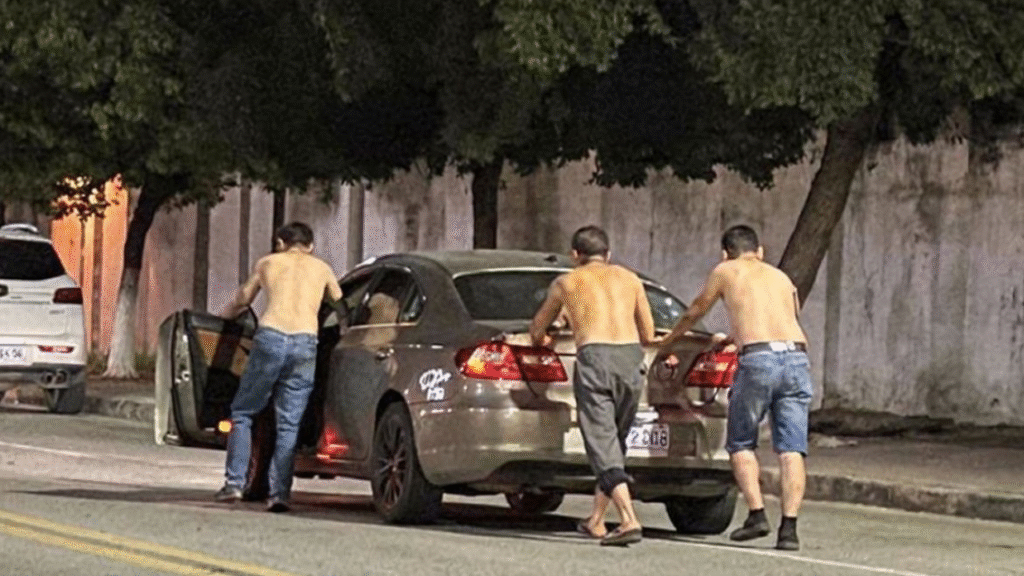 Três amigos na China se viram diante de uma situação inusitada: após beberem, decidiram não dirigir alcoolizados e, em vez disso, optaram por empurrar o carro pela estrada até chegar em casa. A intenção era correta, evitando colocar a si mesmos e outros em risco, mas a escolha acabou trazendo um problema inesperado.