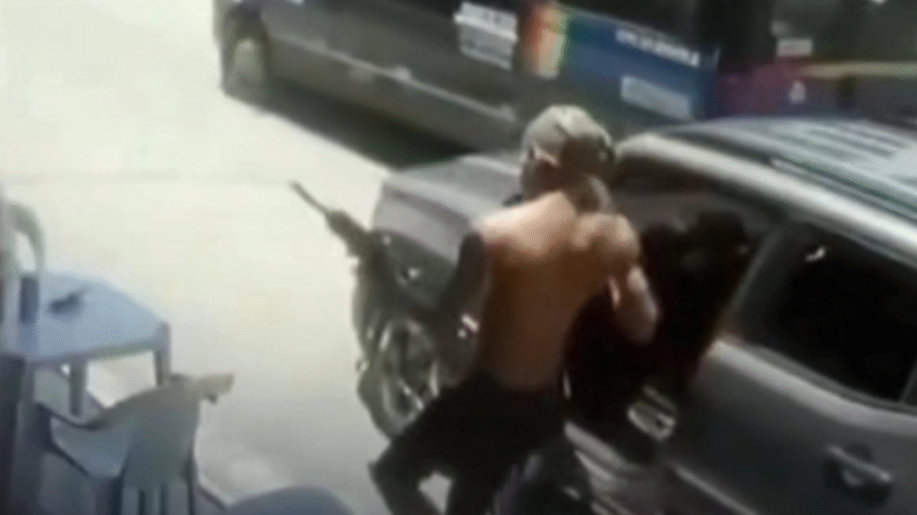 Uma câmera de segurança registrou o momento em que um homem armado com um fuzil atira contra uma van, no bairro da Curicica, Zona Oeste do Rio de Janeiro, no último sábado (01). O suspeito desceu de um Jeep Renegade e fez diversos disparos na direção do veículo em movimento. Ainda não há informações sobre o motivo do ataque nem sobre possíveis feridos. A Polícia Civil investiga o caso e tenta identificar o autor dos disparos.