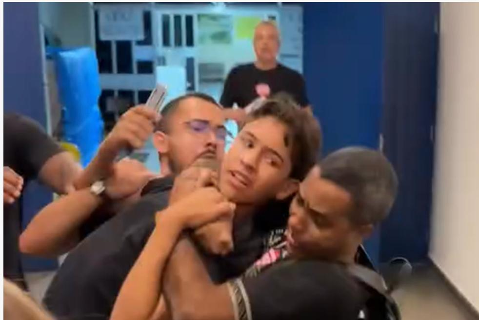 Após cerca de dois minutos de conversa com o deputado federal Glauber Braga (PSOL-RJ) em um dos corredores da unidade, o filmmaker Davy Silva foi surpreendido com um golpe pelas costas, popularmente conhecido como mata-leão. O momento foi registrado por outro assessor de Pedro que também gravava a situação (assista ao vídeo).
