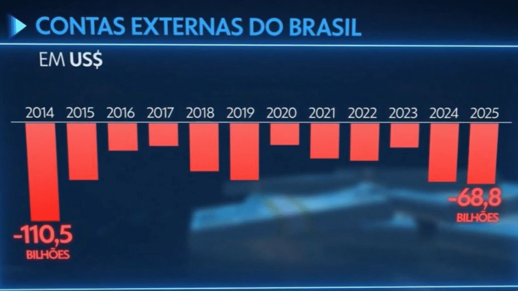 As contas externas brasileiras fecharam 2025 com o maior rombo em 11 anos.