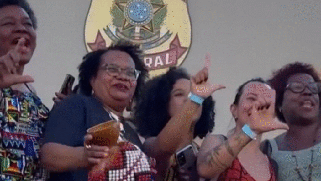 Integrantes do movimento negro celebram prisão de Bolsonaro na porta da PF.