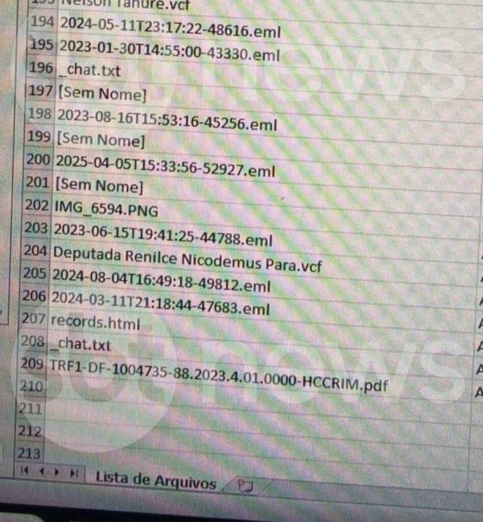 Há contatos pessoais de três ministros do Supremo Tribunal Federal: Dias Toffoli, Alexandre de Moraes e Nunes Marques, além do telefone do ex-ministro Ricardo Lewandowski e de seu filho Henrique, de ministros do Superior Tribunal de Justiça, como Benedito Gonçalves, e governadores do Distrito Federal, Ibaneis Rocha e do Rio de Janeiro, Cláudio Castro.