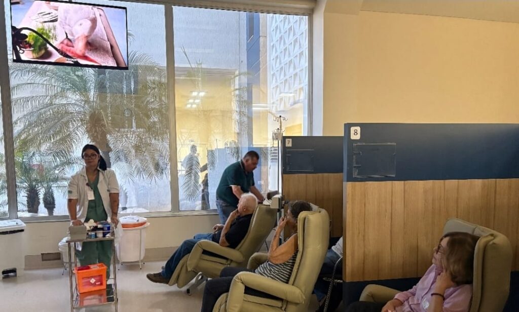 Hospital Oncológico Unimar realizou o “Cine- Onco” para tornar o tratamento mais humanizado e acolhedor. Ambiente da quimioterapia promove espaço de convivência, leveza e esperança. Veja!