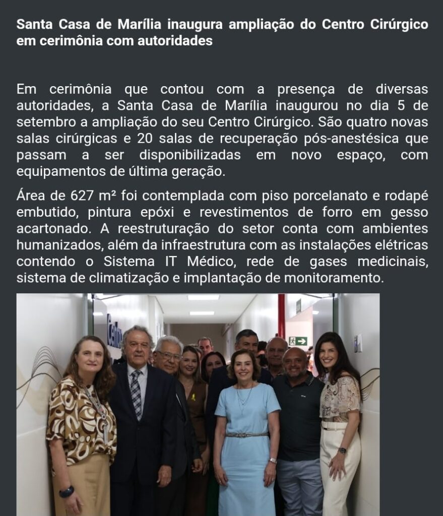 1) Santa Casa de Marília inaugura ampliação do Centro Cirúrgico em cerimônia com autoridades