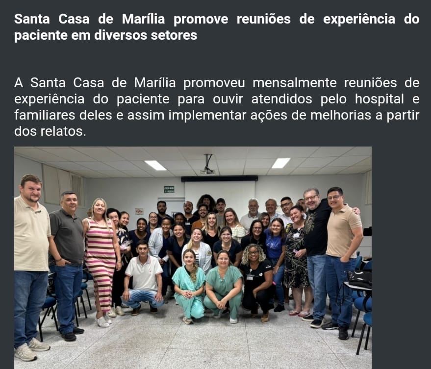 3) Santa Casa de Marília promove reuniões de experiência do paciente em diversos setores