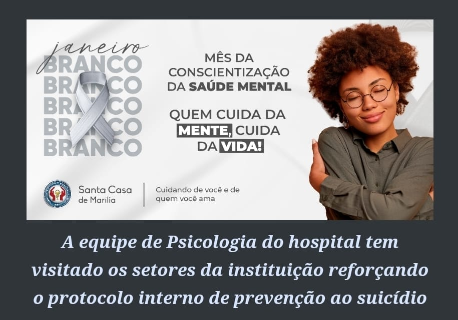Santa Casa de Marília promove ações da campanha Janeiro Branco com foco na saúde mental. Haverá até uma live hoje, quarta-feira, com o coordenador do Núcleo de Psicologia Hospitalar do hospital