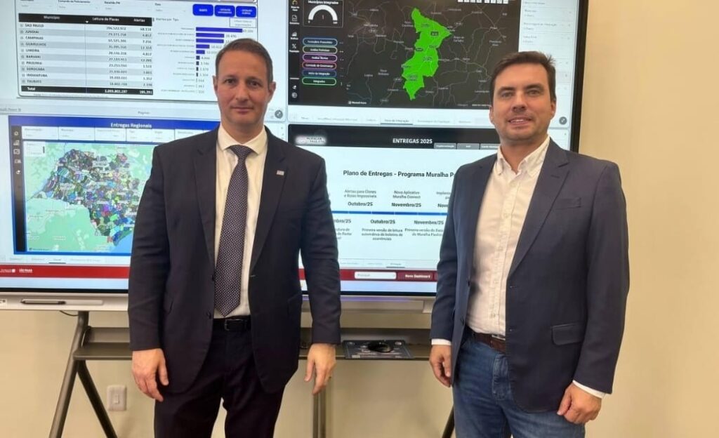 Durante o encontro, o secretário Derrite apresentou ao prefeito Vinicius algumas funcionalidades do programa Muralha Paulista, lançado pelo Governo de São Paulo em 2024.