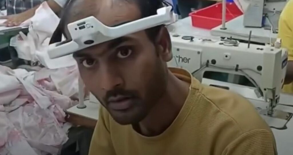 Um vídeo que está circulando nas redes mostra trabalhadores indianos em fábricas têxteis usando câmeras montadas na cabeça enquanto cosem, dobram tecidos e repetem movimentos manuais com precisão o dia inteiro.